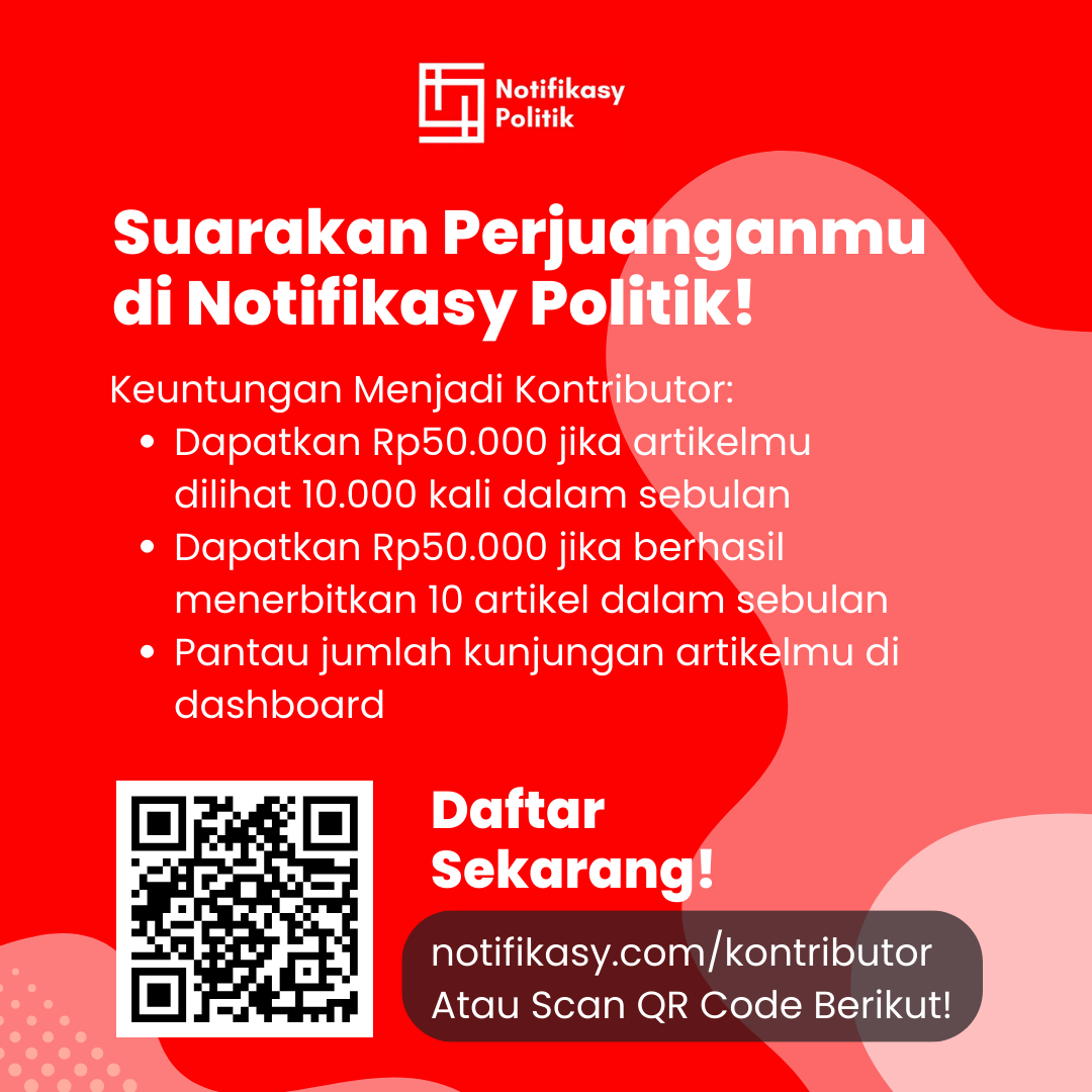 - Tim Redaksi Notifikasy Politik akan meninjau pendaftaran Anda. Jika Anda terpilih menjadi bagian dari kontributor Notifikasy Politik, kami akan segera mengirimkan akun kontributor melalui email Anda.